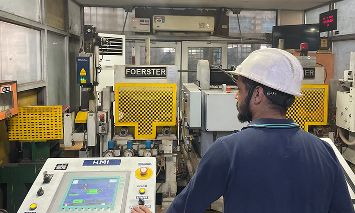 Our automatic ultrasonic testing machine is designed by Olympus (Canada). It works on the principle of phased array technology. It is equipped with QuickView Software which enables us to detect defects online. This machine includes two waves such as longitudional waves which detects internal defects and shear waves which detects sub-surface defects. We can handle wide range of product with a size range of 90 to 120 mm. It has a defect detection capability of 0.3 x 30 mm (SDH) and 0.4 mm (FBH).