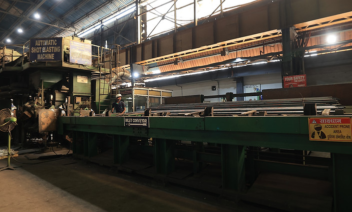 Our shot blasting machine is designed and manufactured by TOSCA (Italy), ensuring the highest quality and reliability. we can handle a wide range of material with a size range of 16 to 90 mm. Our machine is capable of achieving surface finishes of SA 2.5 to 3.0, which provides high quality surface by removing scale.